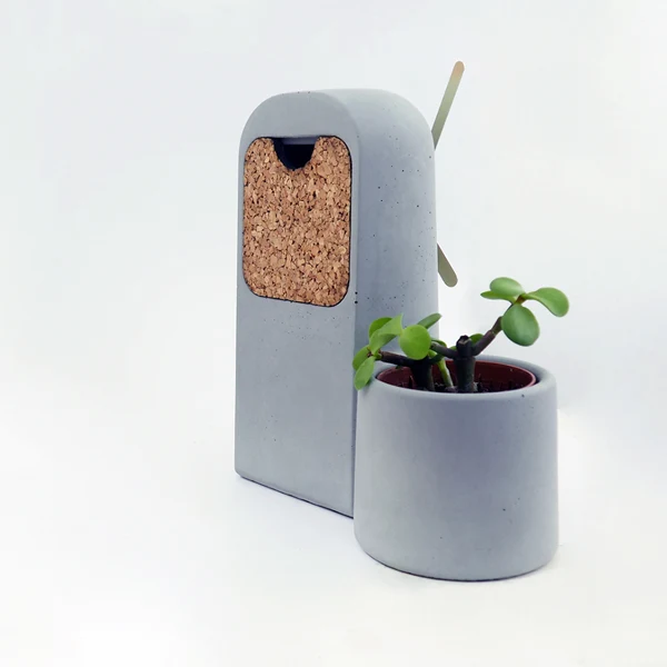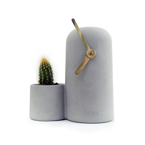 Die Tischuhr Silo verbindet Funktionalität mit Ästhetik. Während die Zeit vergeht, fügt das integrierte Fach, in dem eine Pflanze wächst, ein dynamisches Element zu Ihrem Raum hinzu. Die klaren Linien und die Verwendung von Beton machen ihn zu einem perfekten Accessoire für Liebhaber des Industriedesigns.
