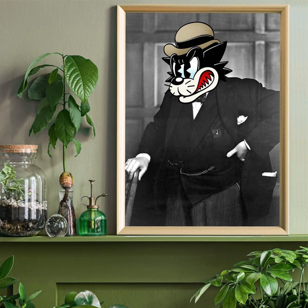 Winston The Cat Portrait Print sorgt nicht nur für einen Hauch von Humor, sondern auch für Gesprächsstoff, indem es Kunst und Satire nahtlos miteinander verbindet.
