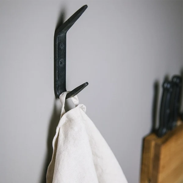 Double Coat Hook elevates your interior with the industrial charm. Handcrafted from wrought iron, this hook offers indestructible durability paired with robust design. Ideal for organizing coats, bags, and accessories in any space.