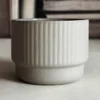 Introducing the Light Grey Ribbed Cappuccino Mug by Archive Studio; a robust companion for your daily brew. This stoneware mug boasts a matte, unglazed ribbed exterior that exudes a rugged charm, while its glazed interior ensures a smooth drinking experience.